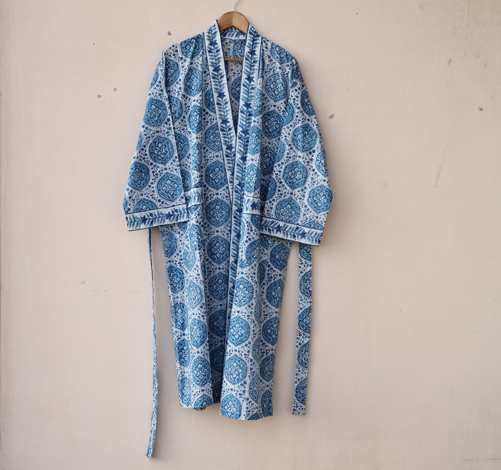 Experience the perfect blend of comfort, style, and artistry with our hand-block printed, reversible cotton quilted kimono. Made from high-quality cotton, this kimono offers exceptional softness and breathability.