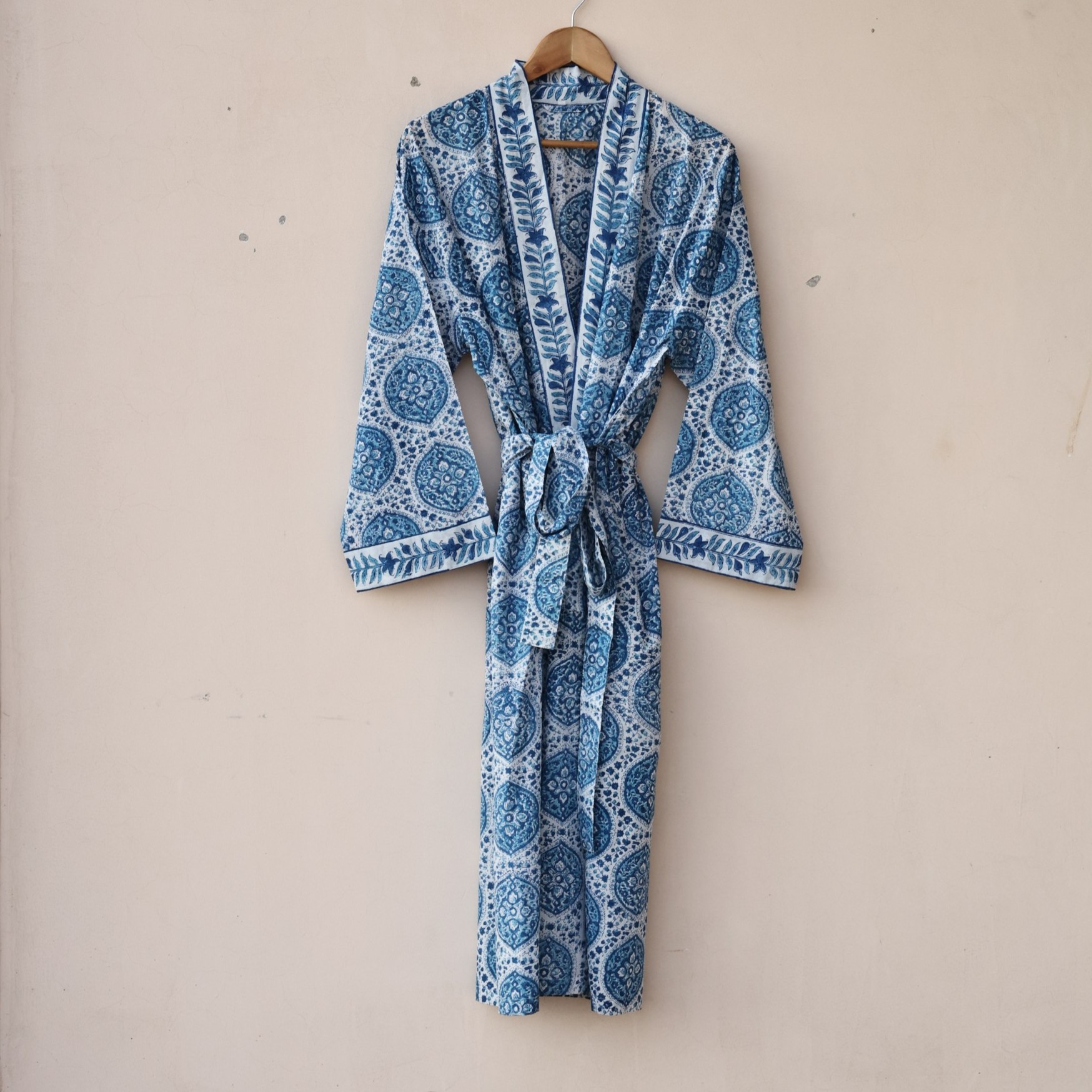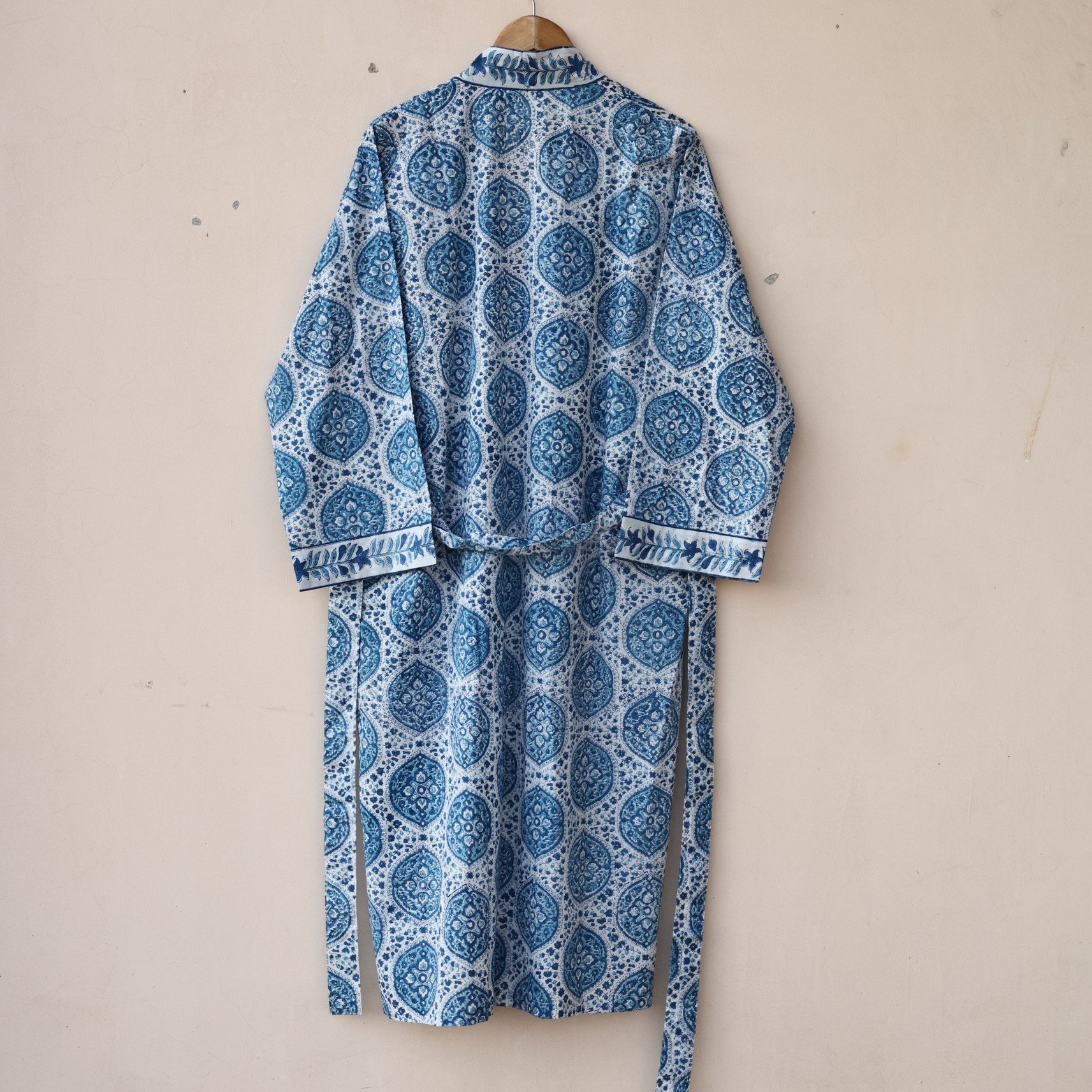 Be the first to review “Comfort Feel Block Printed Cotton Kimono In Blue & White With Spacious Pockets”
