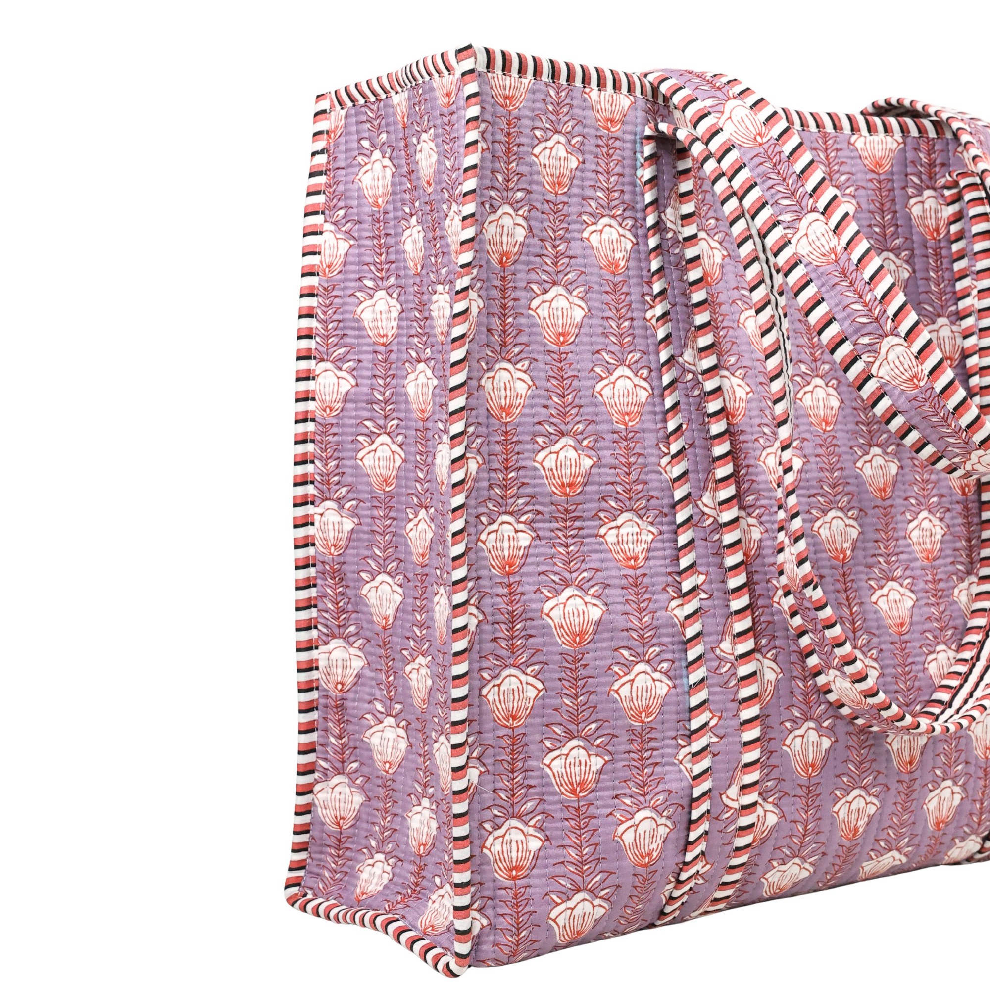 Introducing our Cotton Quilted Tote Bag, a perfect blend of style and functionality. With its vibrant Nature Style prints, this tote bag not only complements your outfit but also brings a touch of nature wherever you go.