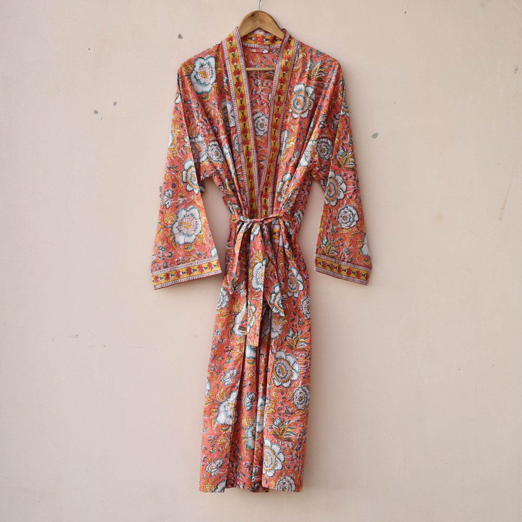 Experience the perfect blend of comfort, style, and artistry with our hand-block printed, reversible cotton quilted kimono. Made from high-quality cotton, this kimono offers exceptional softness and breathability.