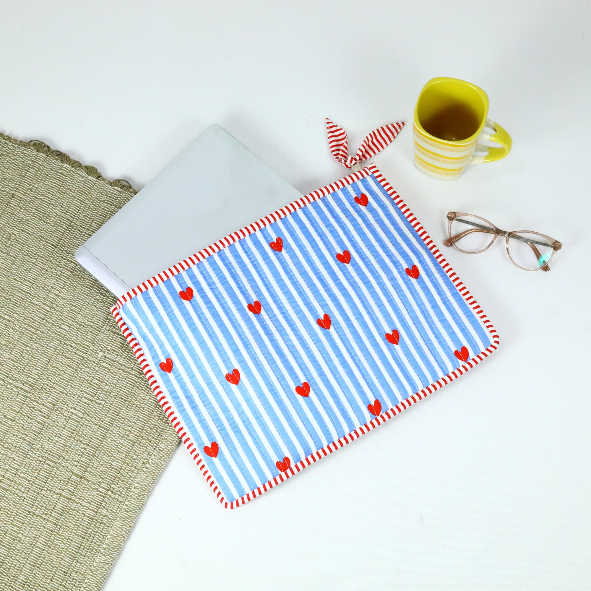 Be the first to review “Elegant Little Heart Design Cotton Quilted Screen Printed Laptop Sleeves With Bow”