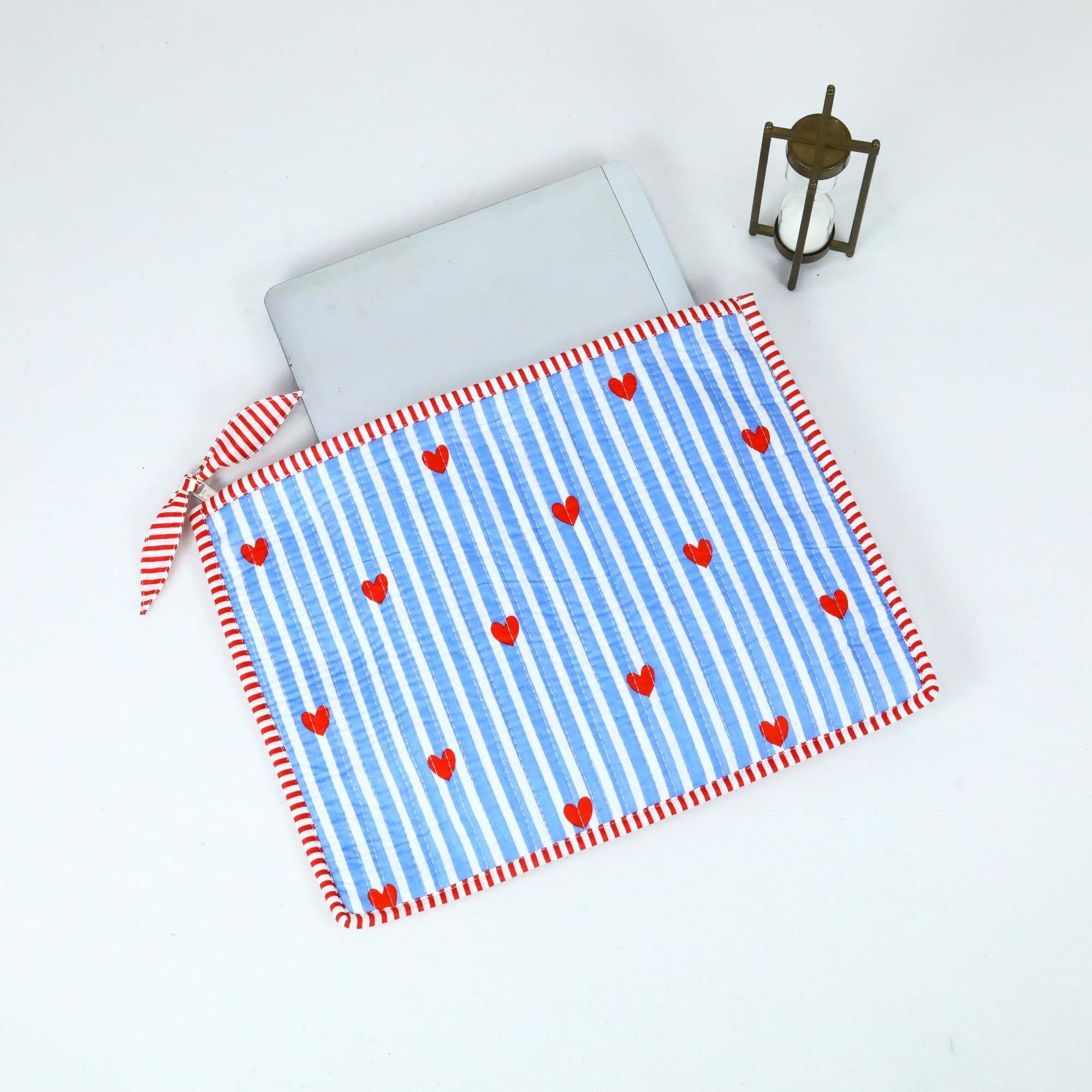 Elegant Little Heart Design Cotton Quilted Screen Printed Laptop Sleeves With Bow