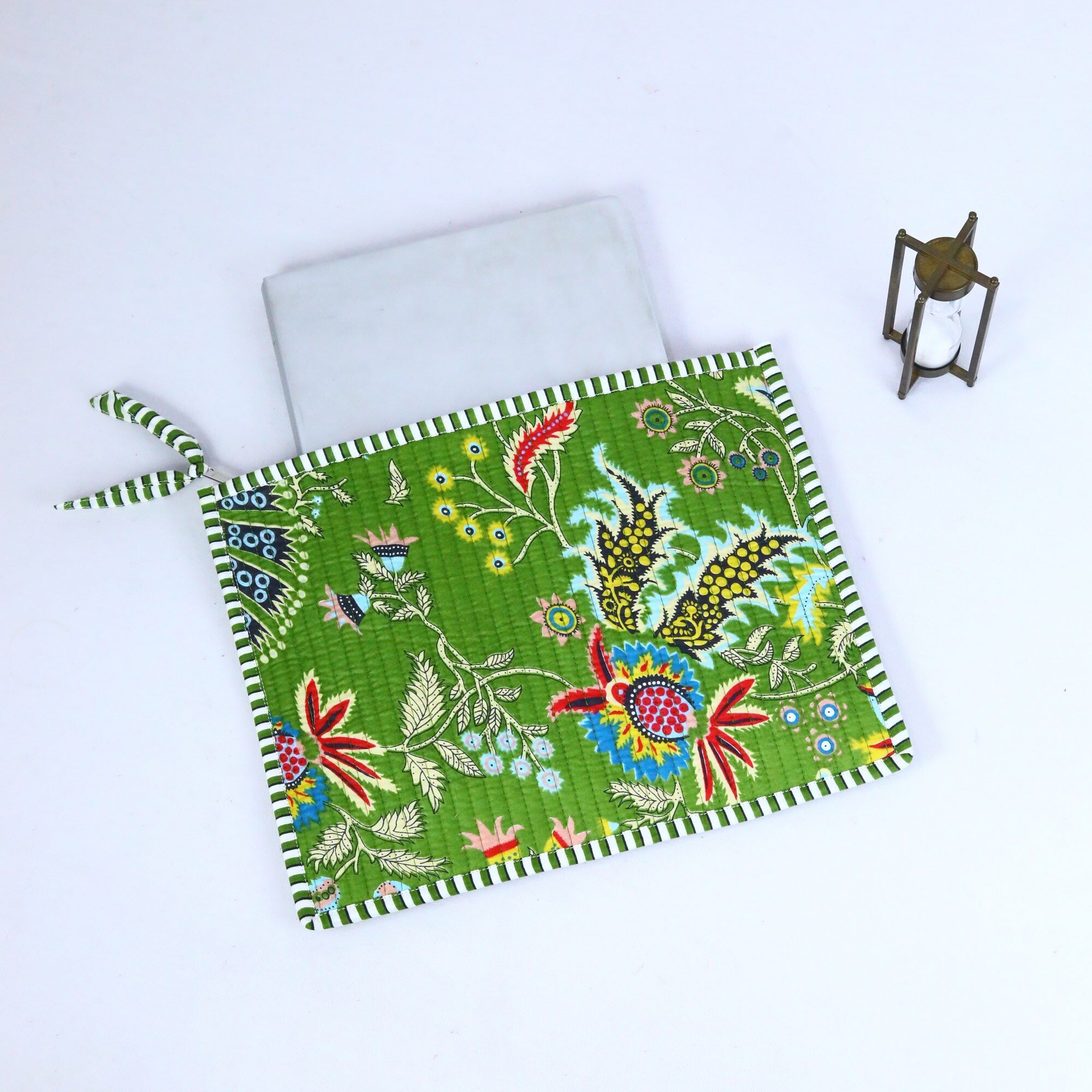 Be the first to review “Floral Haven Cotton Quilted Screen Print Laptop Sleeves With Bow”