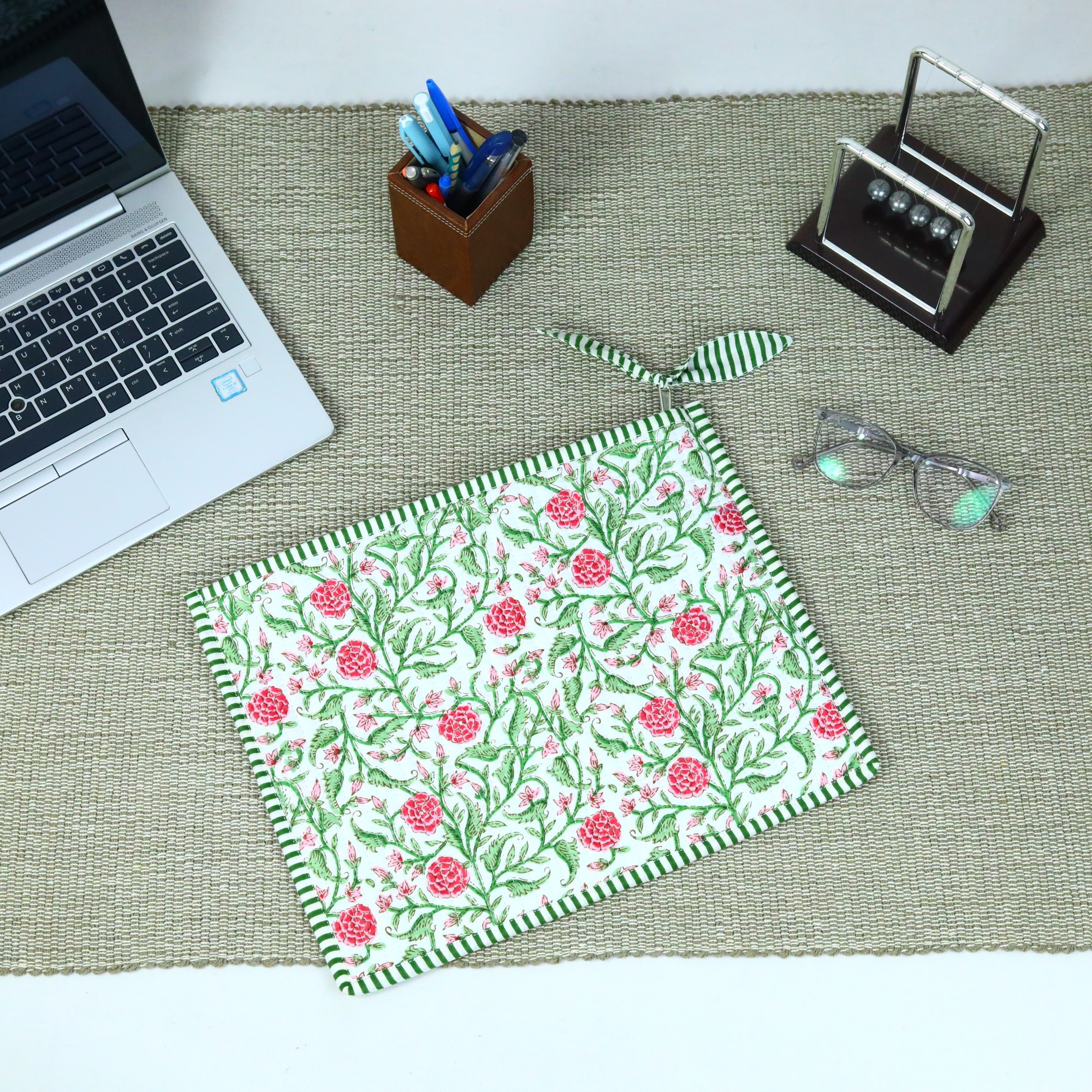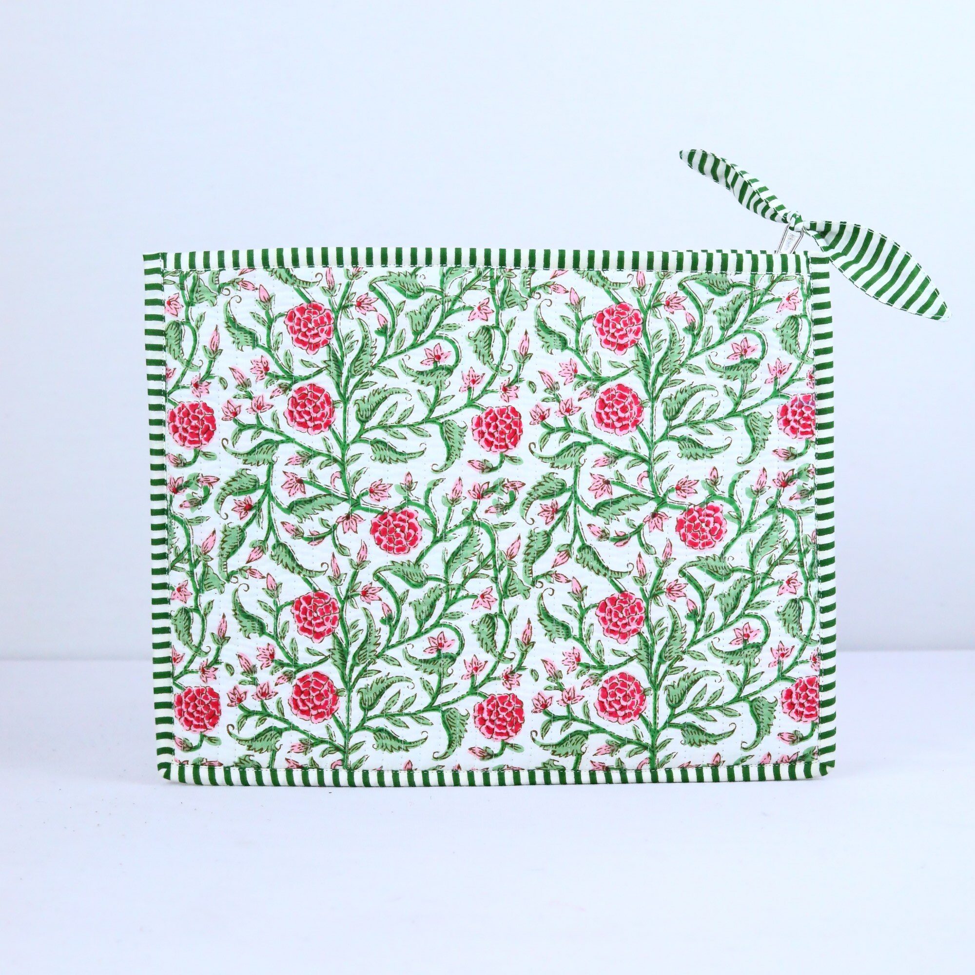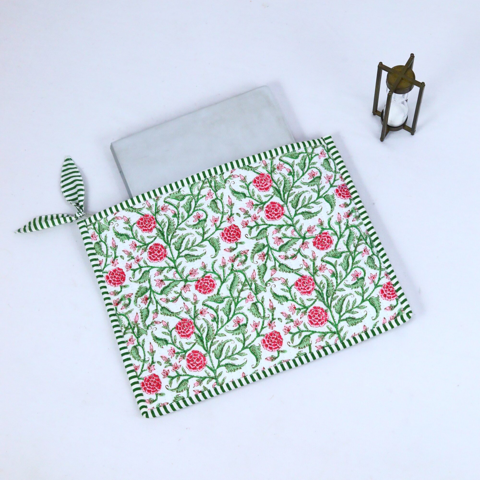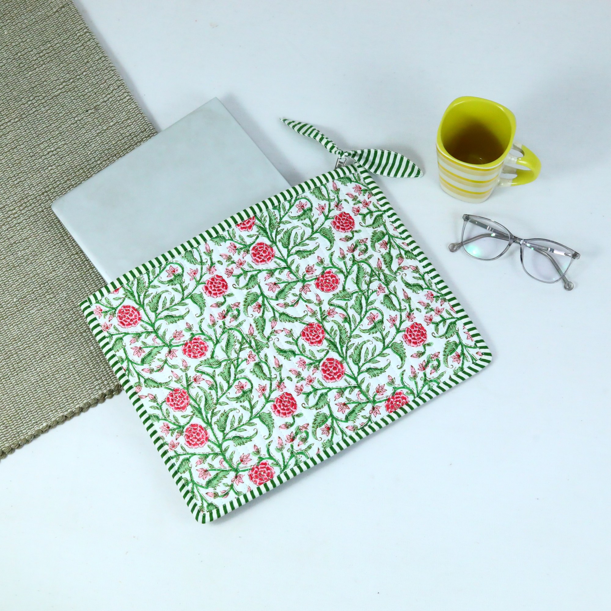 Floral Jaal Cotton Quilted Screen Print Laptop Sleeves With Bow