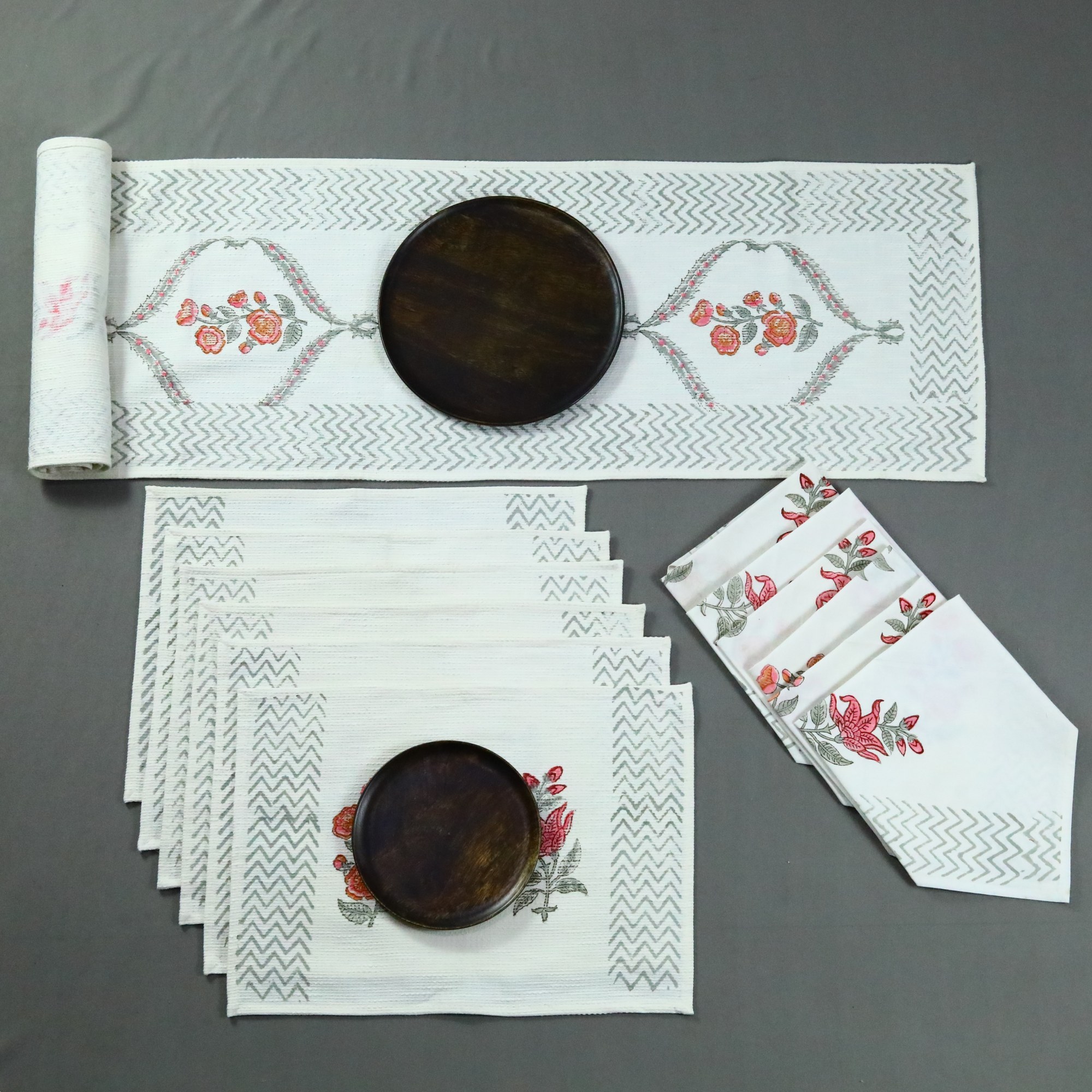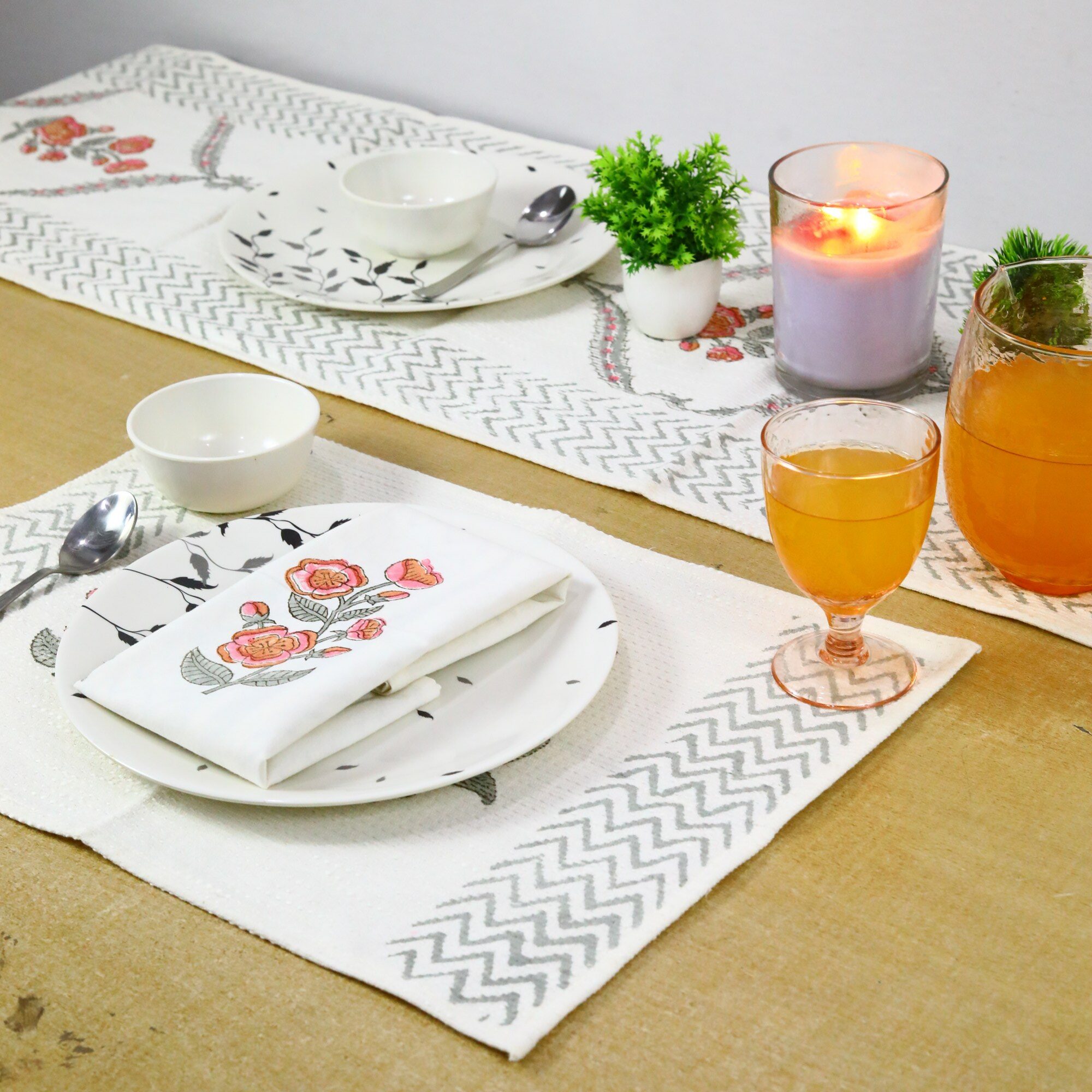 • Dimension : Mat-14×19 Inches, Runner-14.5x72Inches, Napkins-20×20 Inches