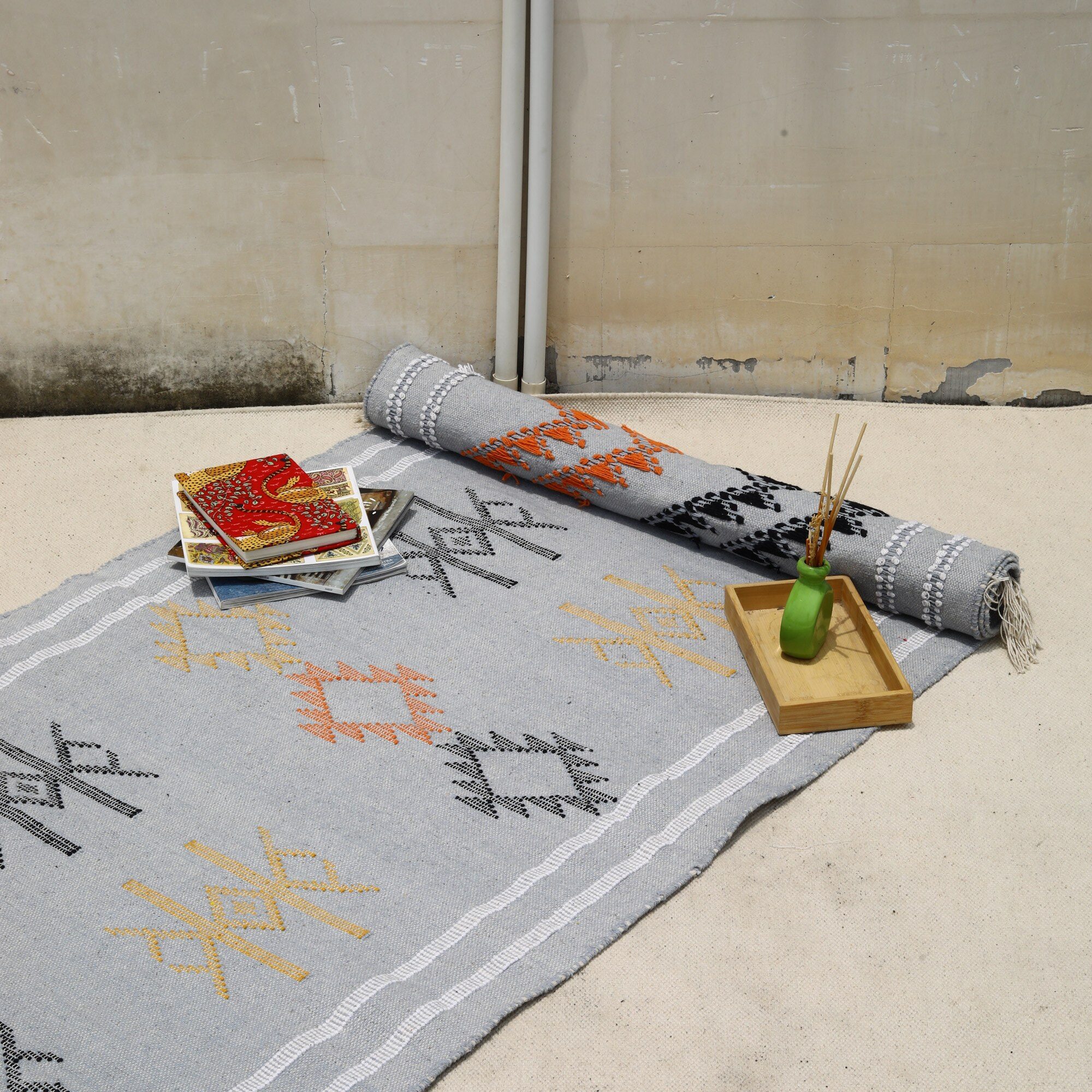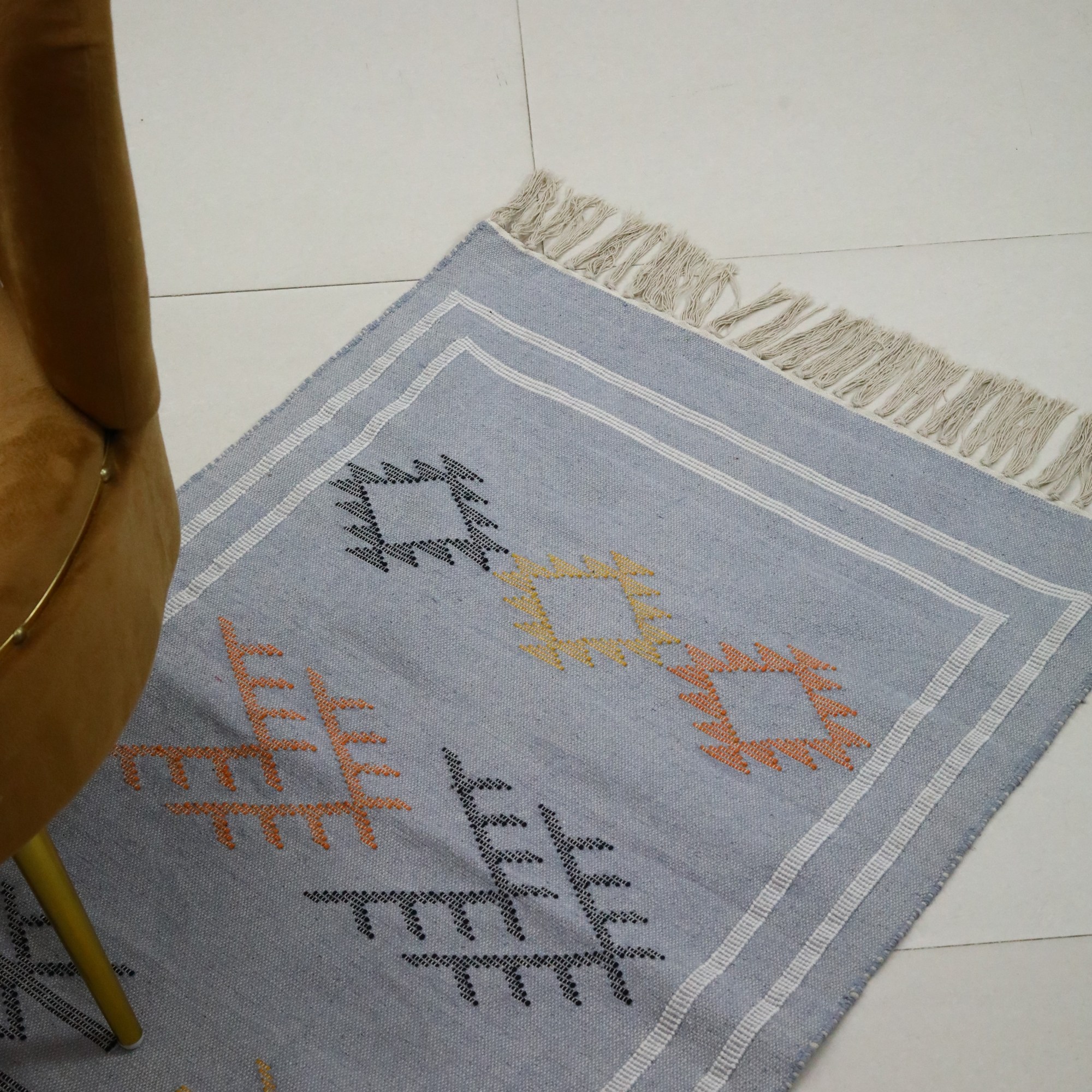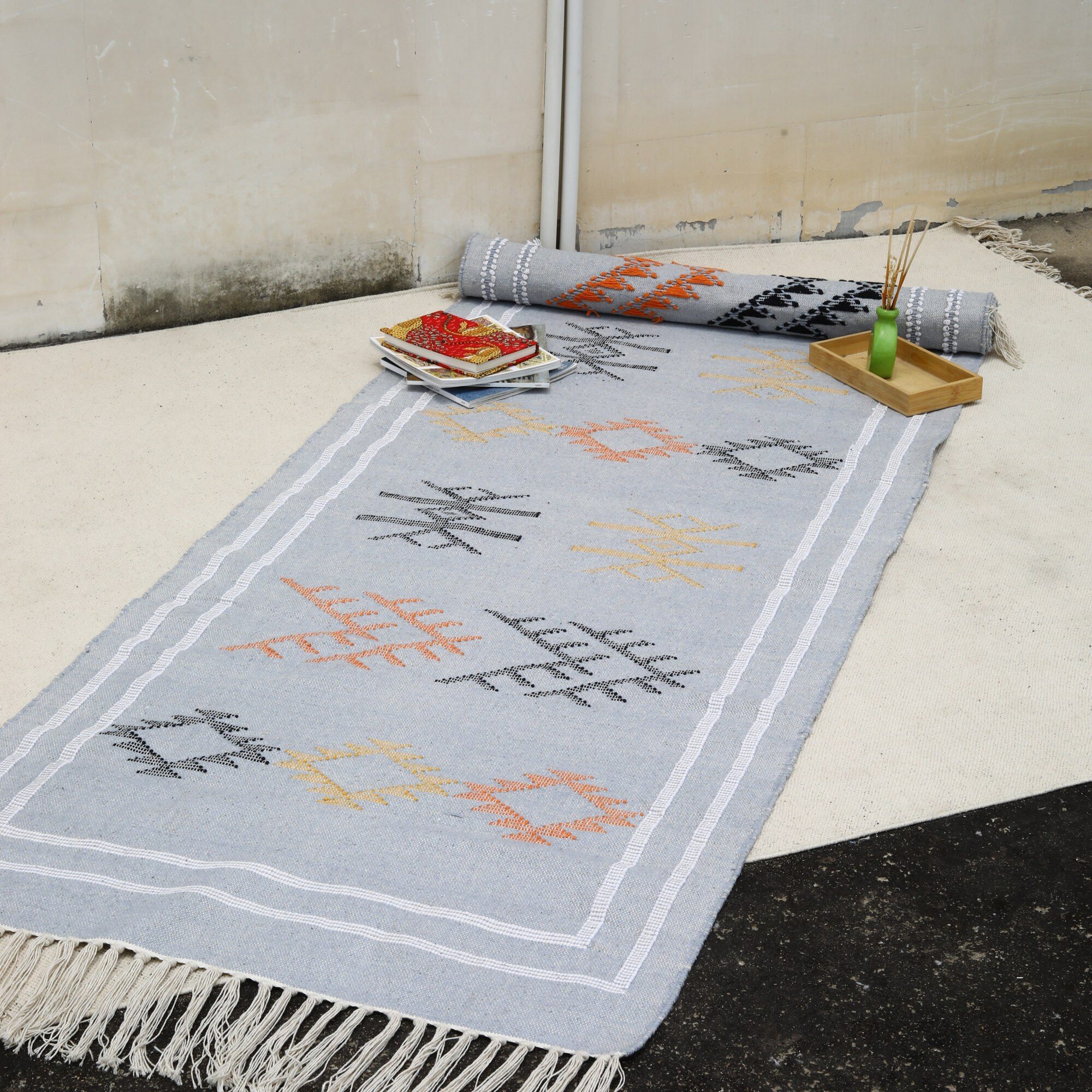 Elevate your home with the earthy charm and handcrafted elegance of our Sabra Cotton Wool Rug,Infuse your space with heritage and handmade beauty through our Sabra Cotton Wool Rugthoughtfully handwoven with a textured finish and adorned with geometric, tribal, and vintageinspired motifs. Made with a thoughtfully balanced blend of cotton for strength, wool for warmth, this rug brings both natural texture and cultural richness into your space. This rug is more than decor — it’s a story told in threads, textures, and ancient symbols.