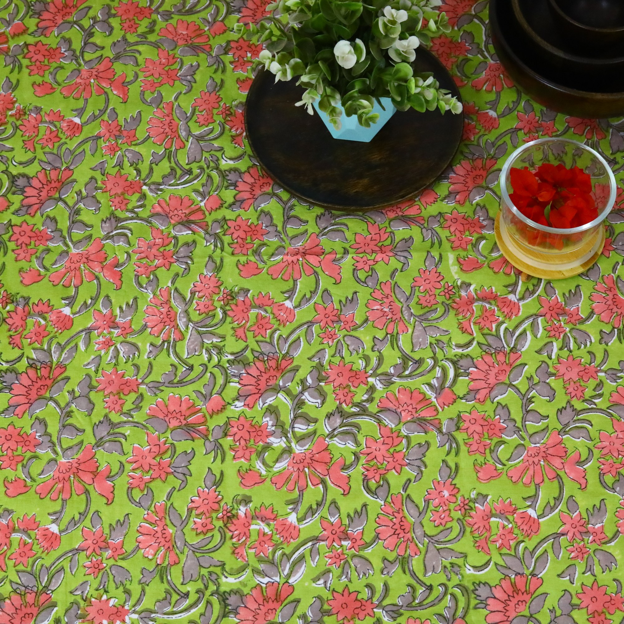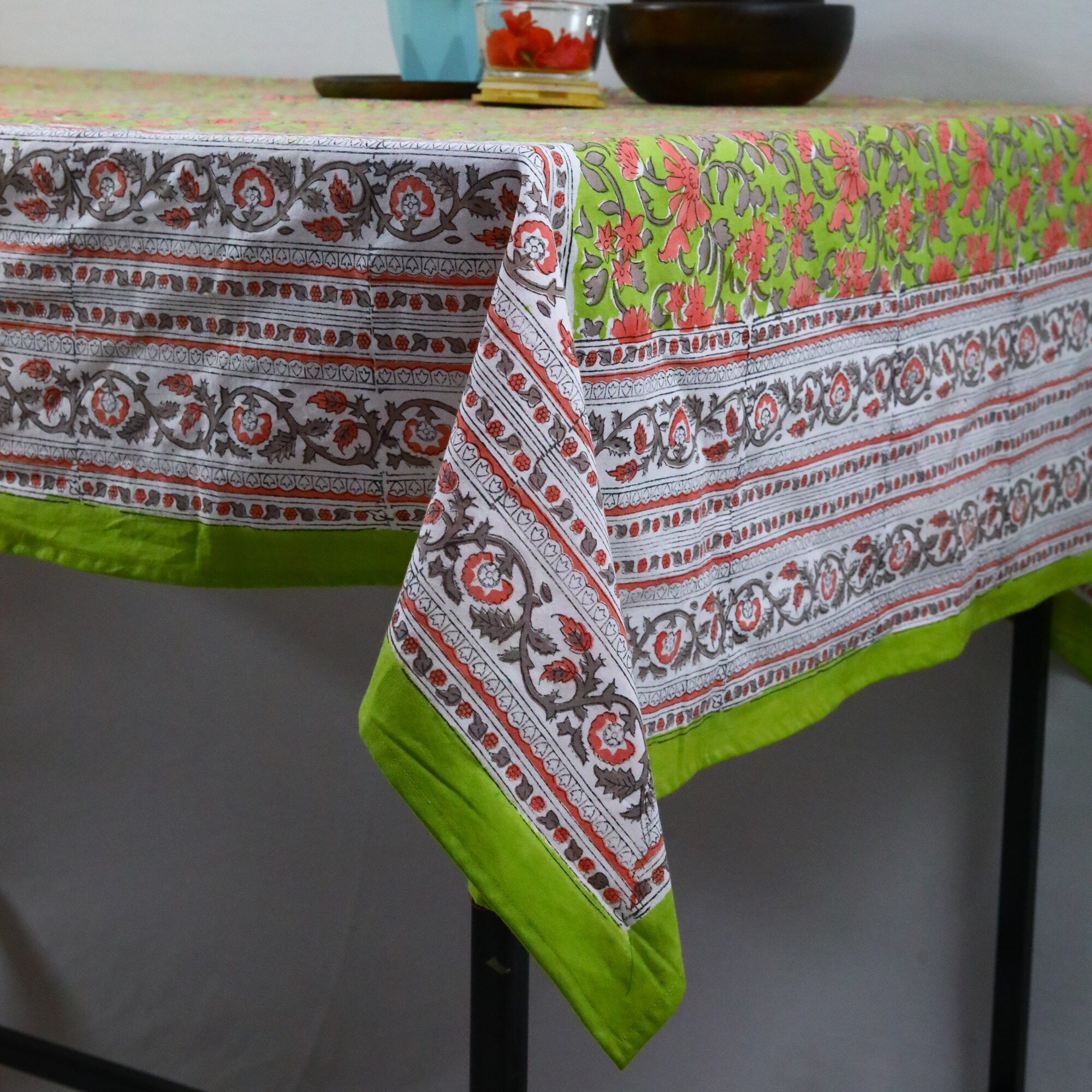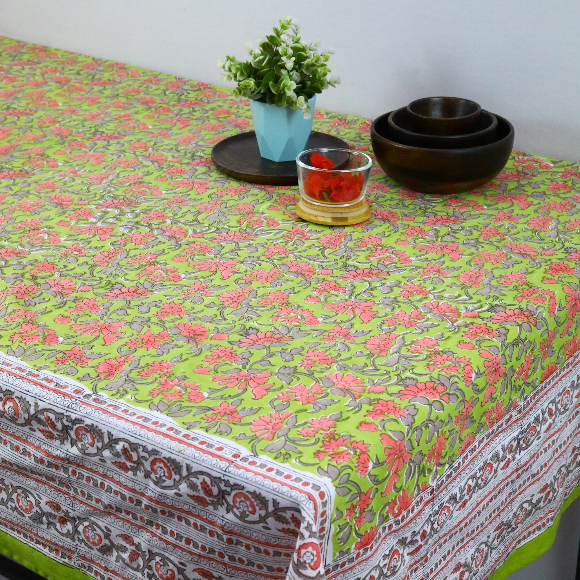 Nature Inspired Cotton Hand Block Print Table Cover