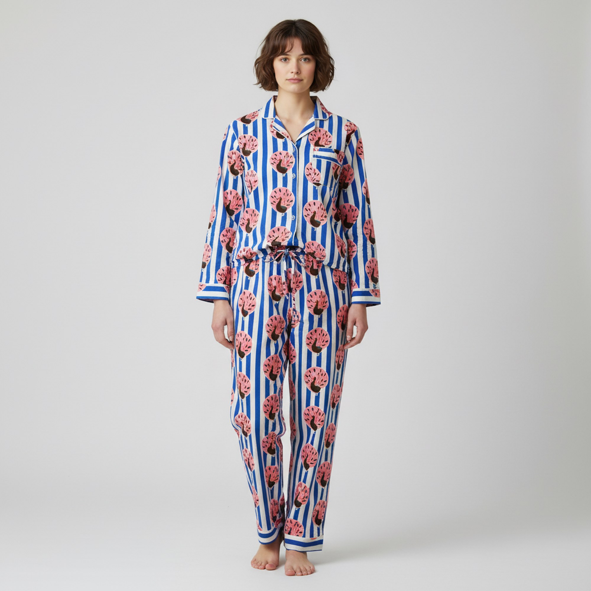 Relax in comfort and style with our Cambric Cotton Printed PJ Set, thoughtfully designed for restful sleep and all-day lounging. Made from 100% premium cambric cotton, this pajama set feels exceptionally soft on the skin while allowing excellent breathability — perfect for everyday wear and warm climates, Slip into softness and let your day gently melt away. Our Cambric Cotton Printed PJ Set is designed for women who love effortless comfort wrapped in timeless style. Crafted from 100% premium cambric cotton,