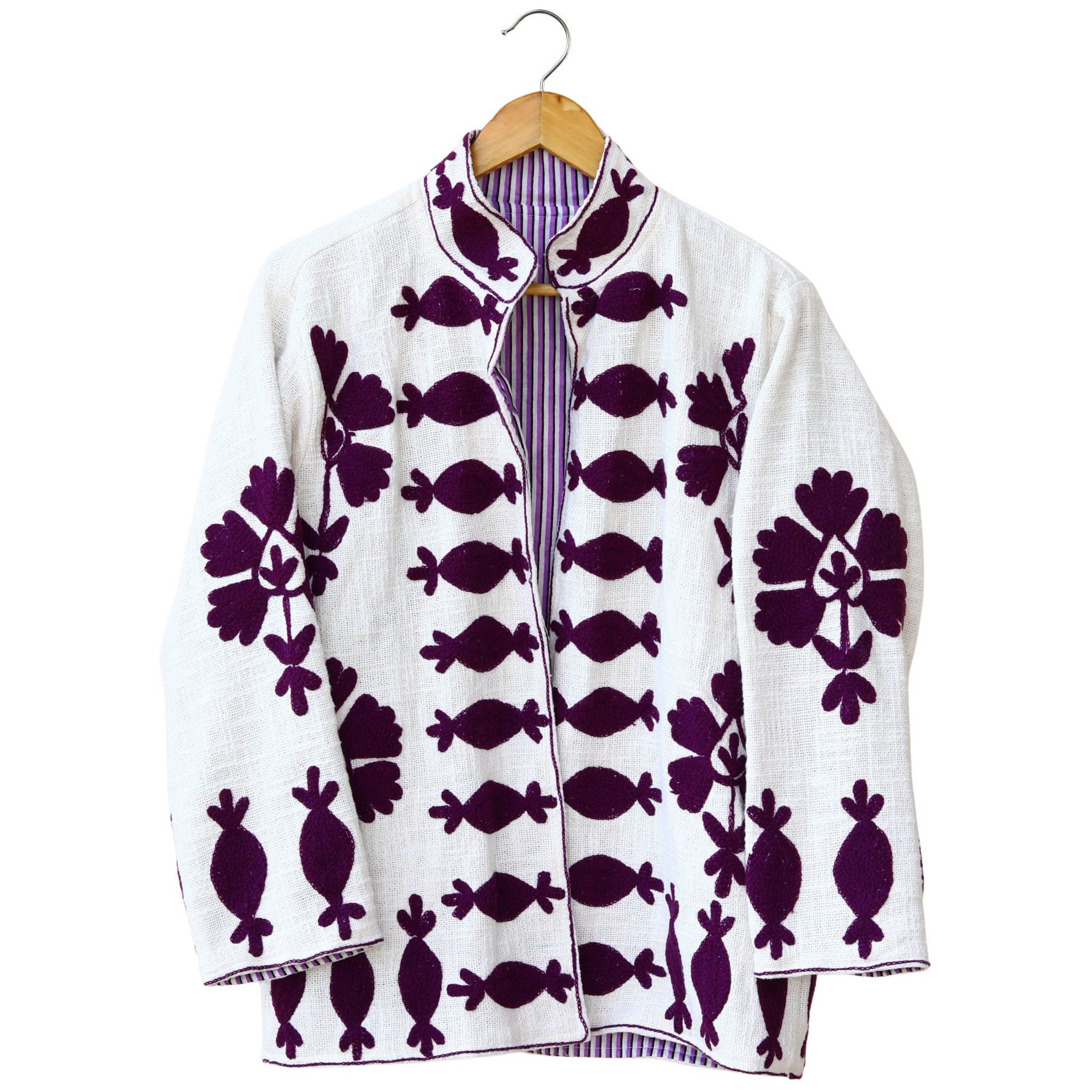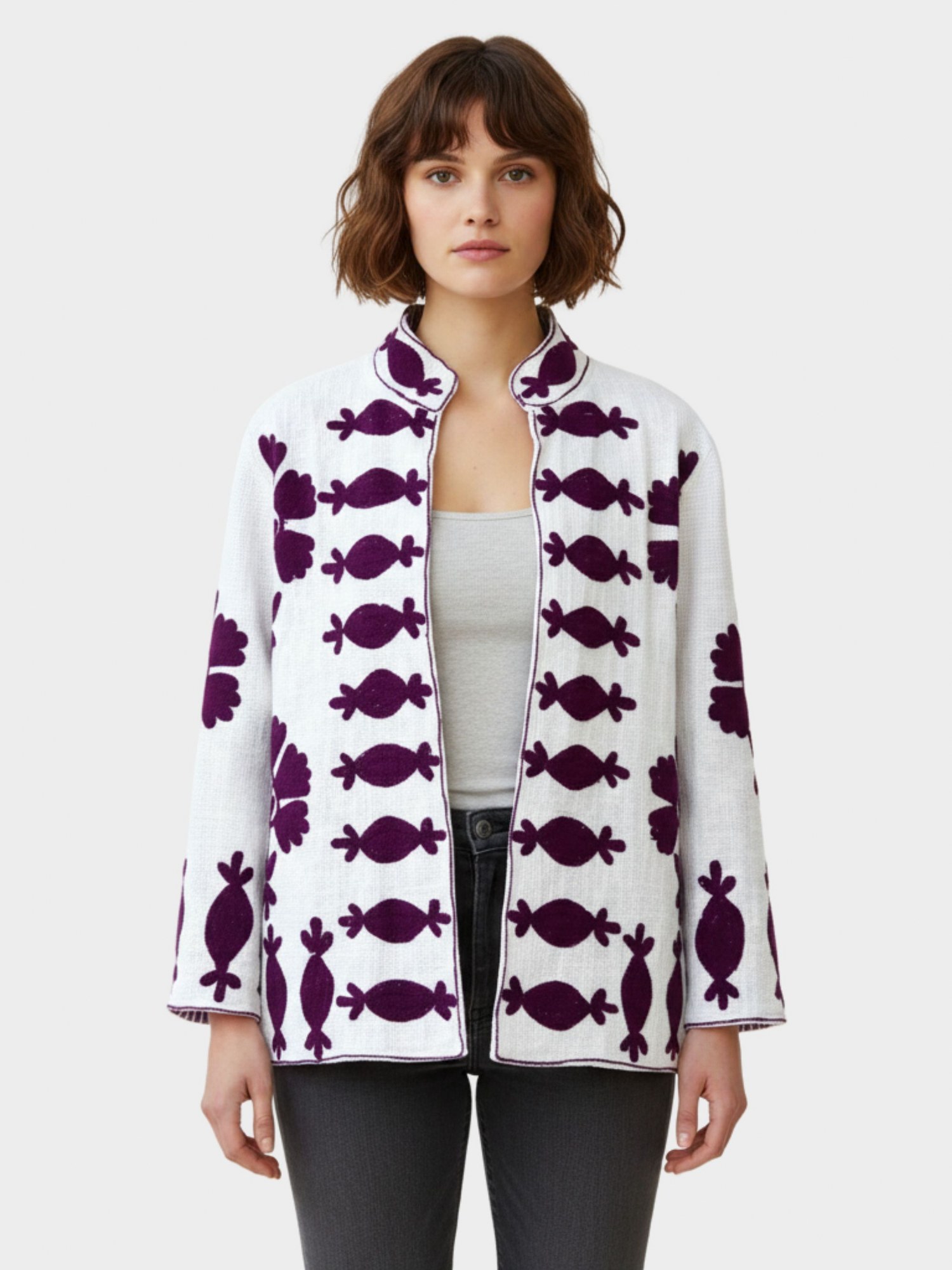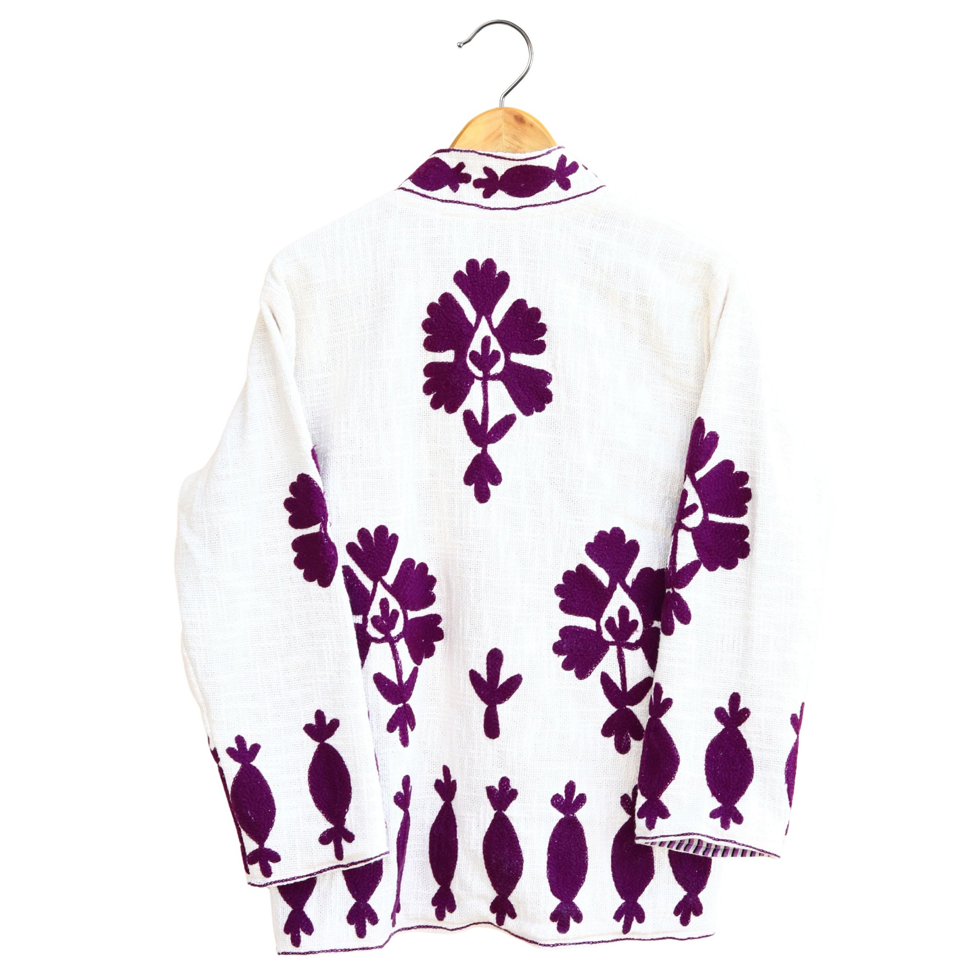 Be the first to review “Pretty in Prints Slub Suzani Jacket In White & Dark Purple”