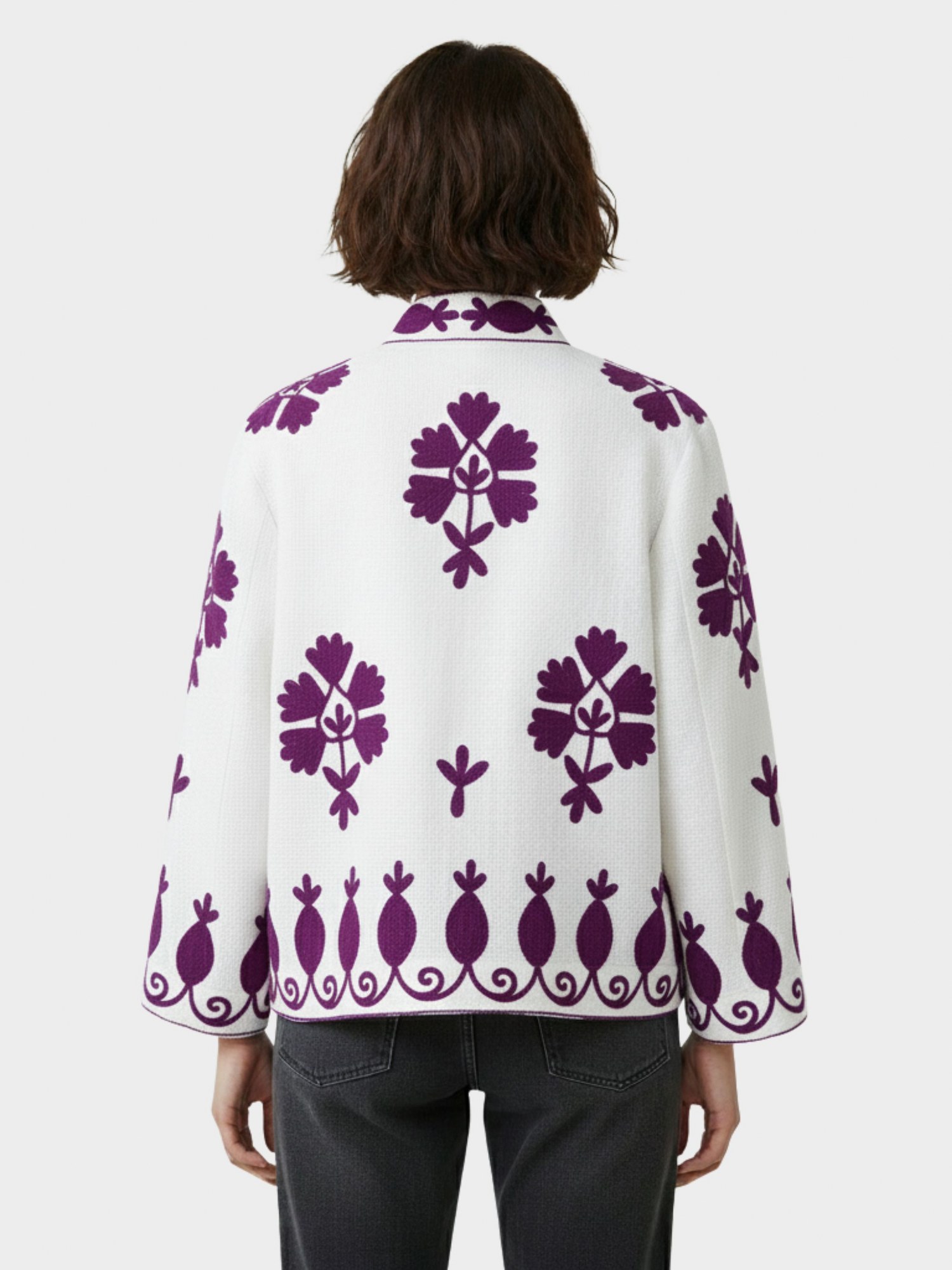 Pretty in Prints Slub Suzani Jacket In White & Dark Purple