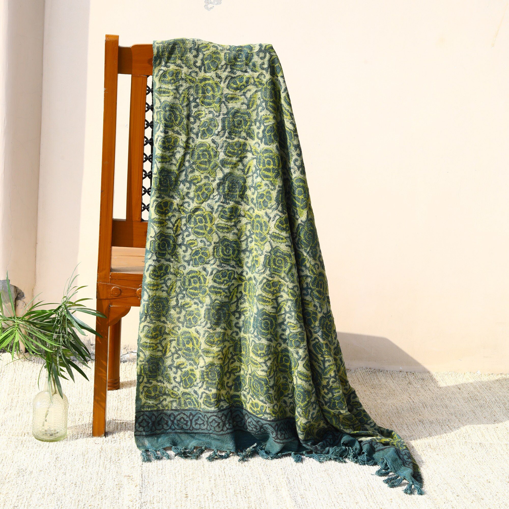 Wrap your space in the beauty of heritage craftsmanship. Crafted from breathable cotton slub fabric, this throw features authentic Ajrakh-inspired motifs meticulously hand block printed by skilled artisans. The natural texture of cotton slub adds depth and character, it features intricate Ajrakh-inspired motifs, hand block print.