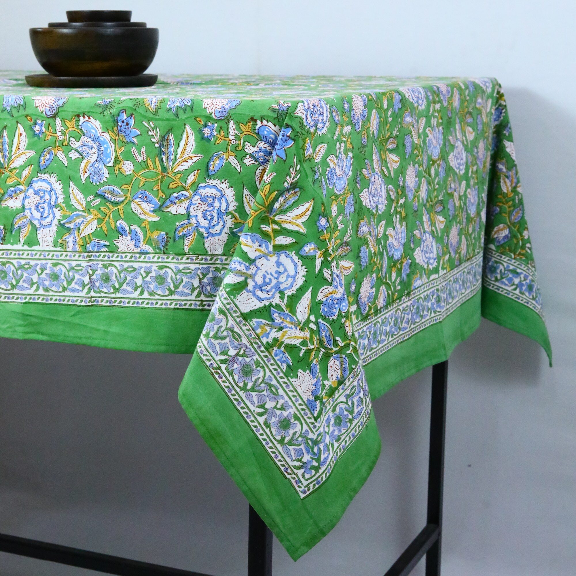 Just too beautiful Hand Block Printed Table Cover. This Table Cover will surely impress you and your guests. With 100% cotton this crisp Patterned Table Cover easily matches any color scheme and will certainly keep your room serene.
