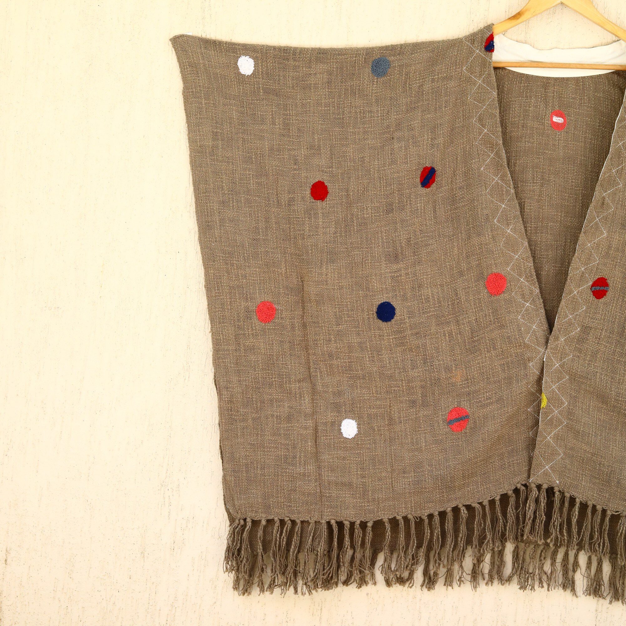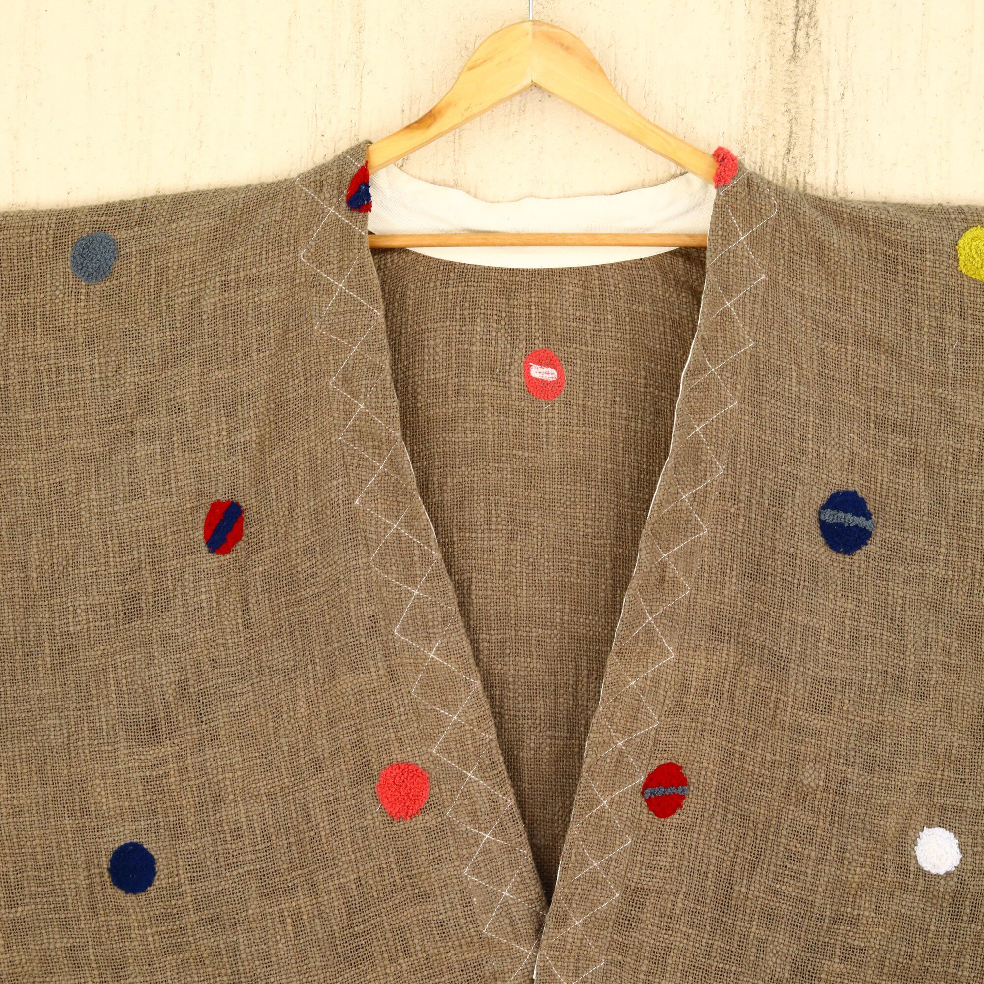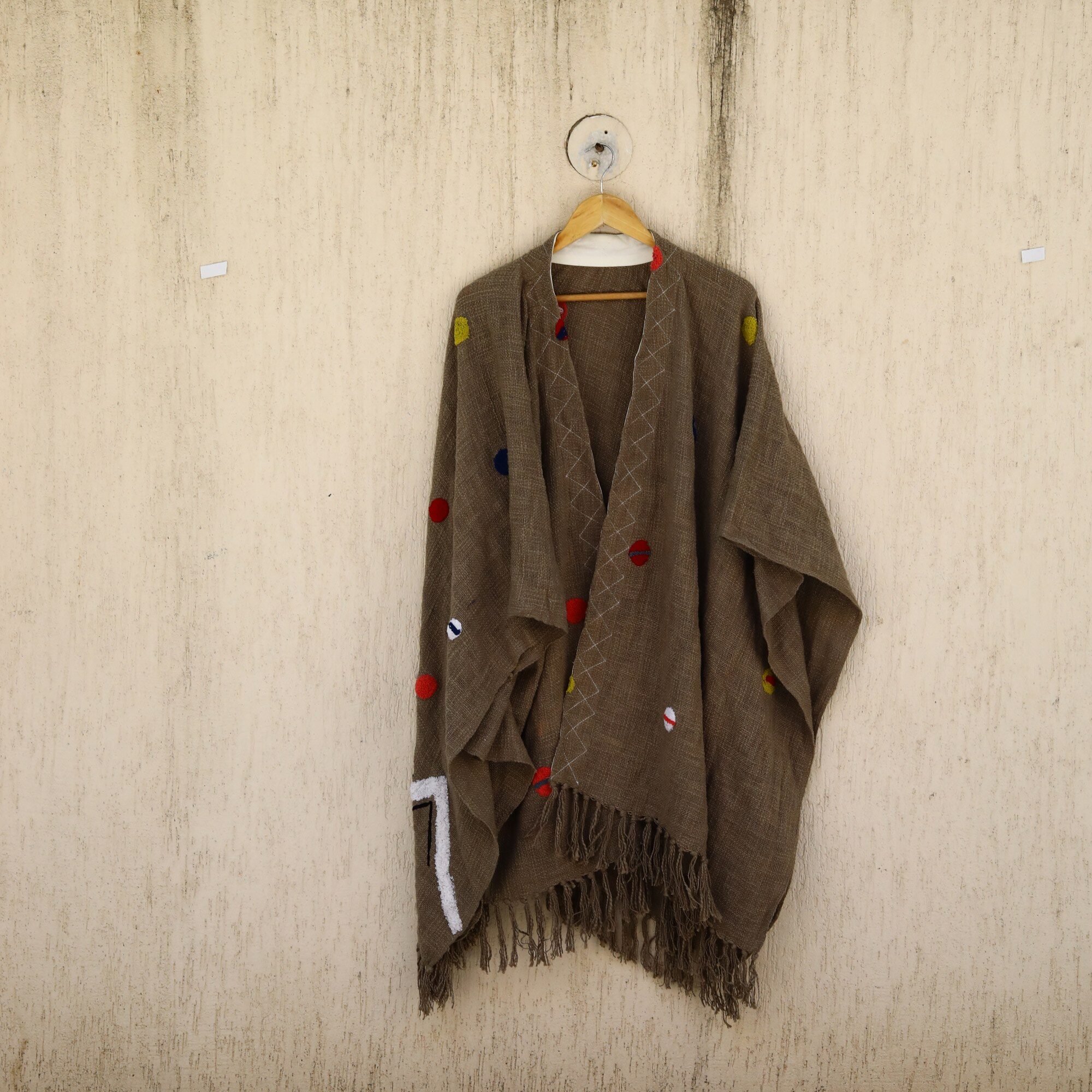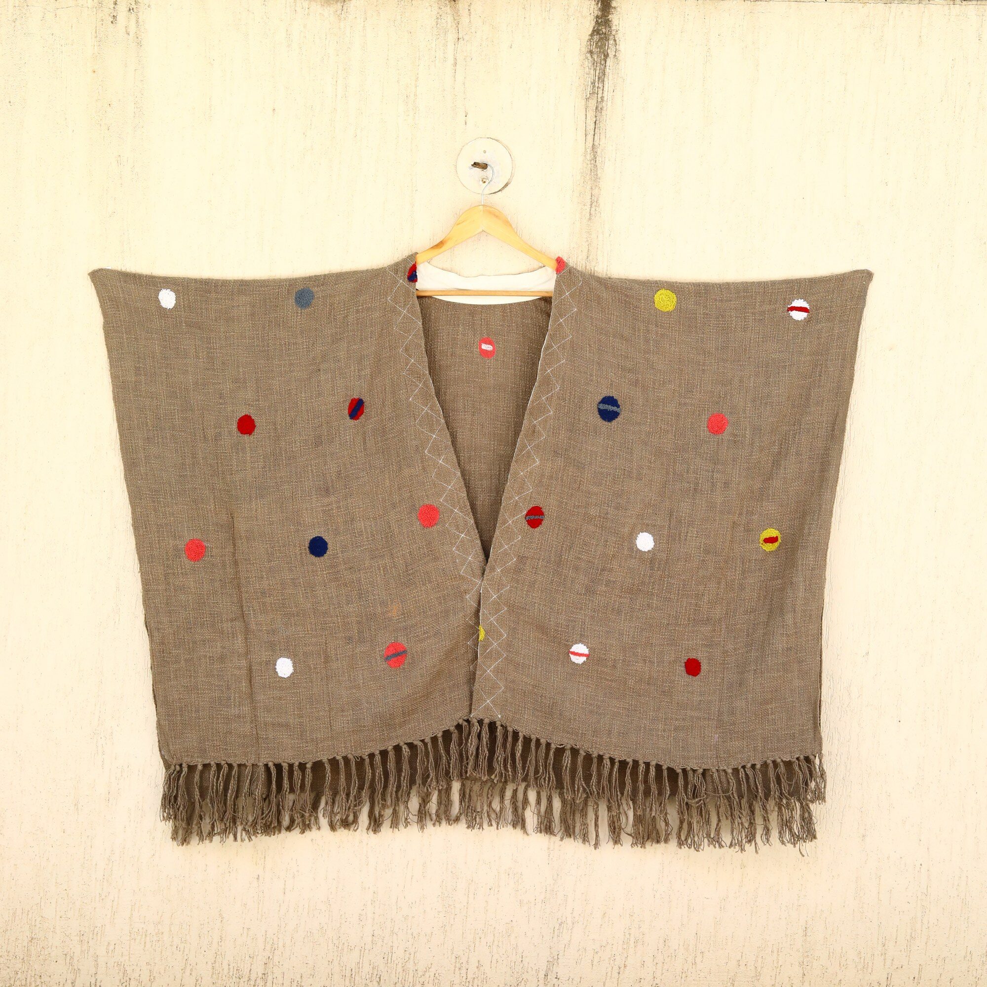 Be the first to review “Slub Grace Embroidery Shrug In Mud Brown & Multicolor”